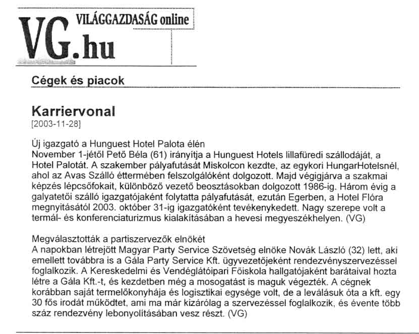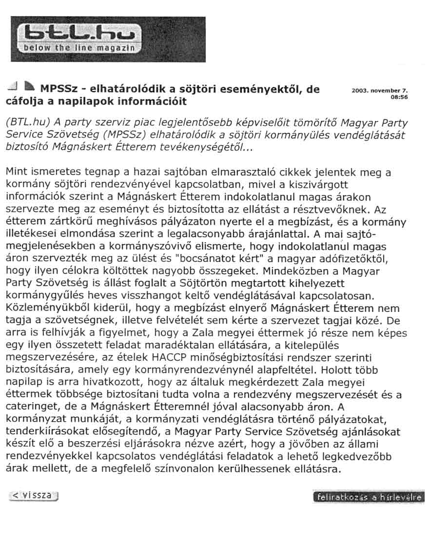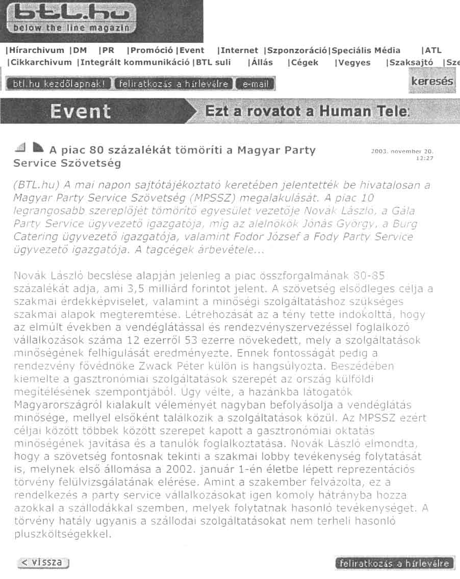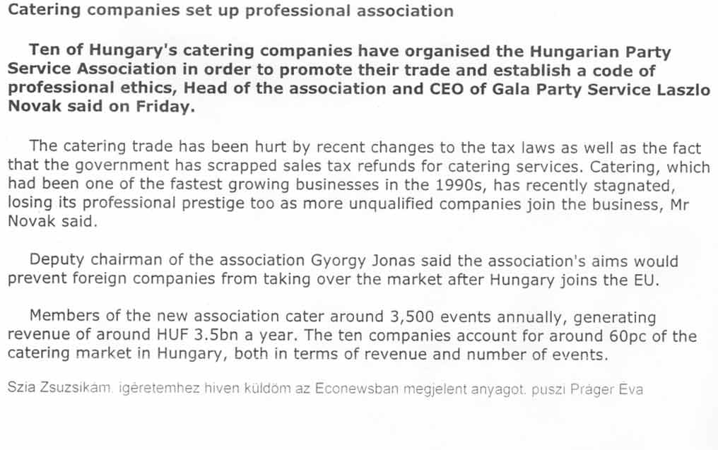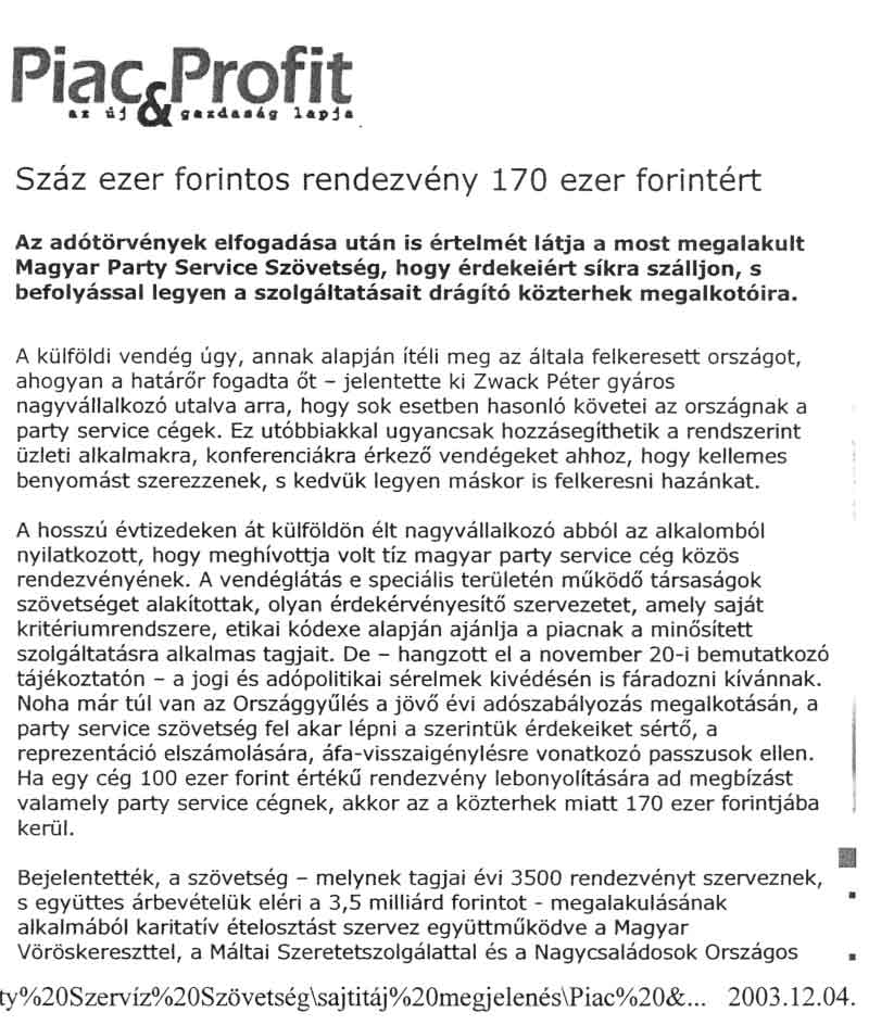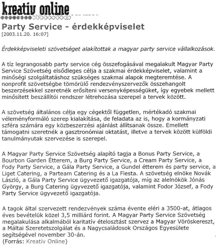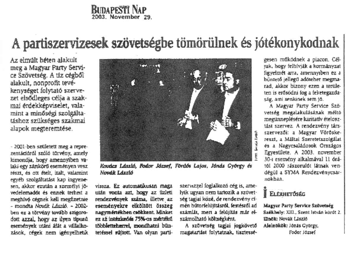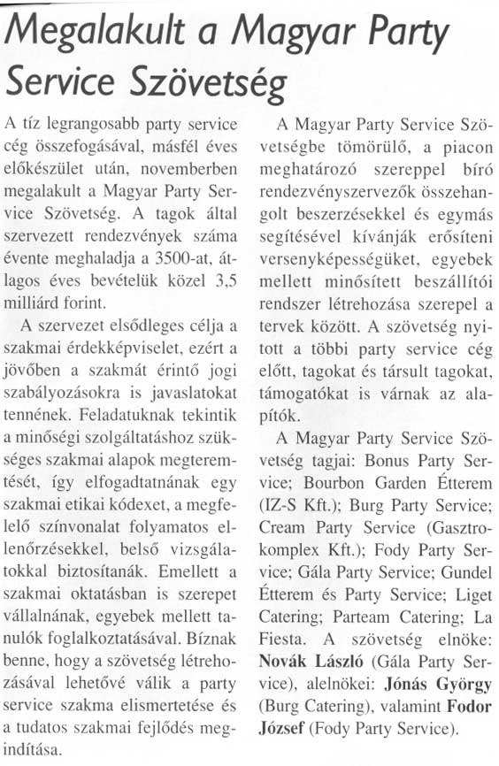 A Magyar Party Service Szövetség non profit tevékenységet folytat,