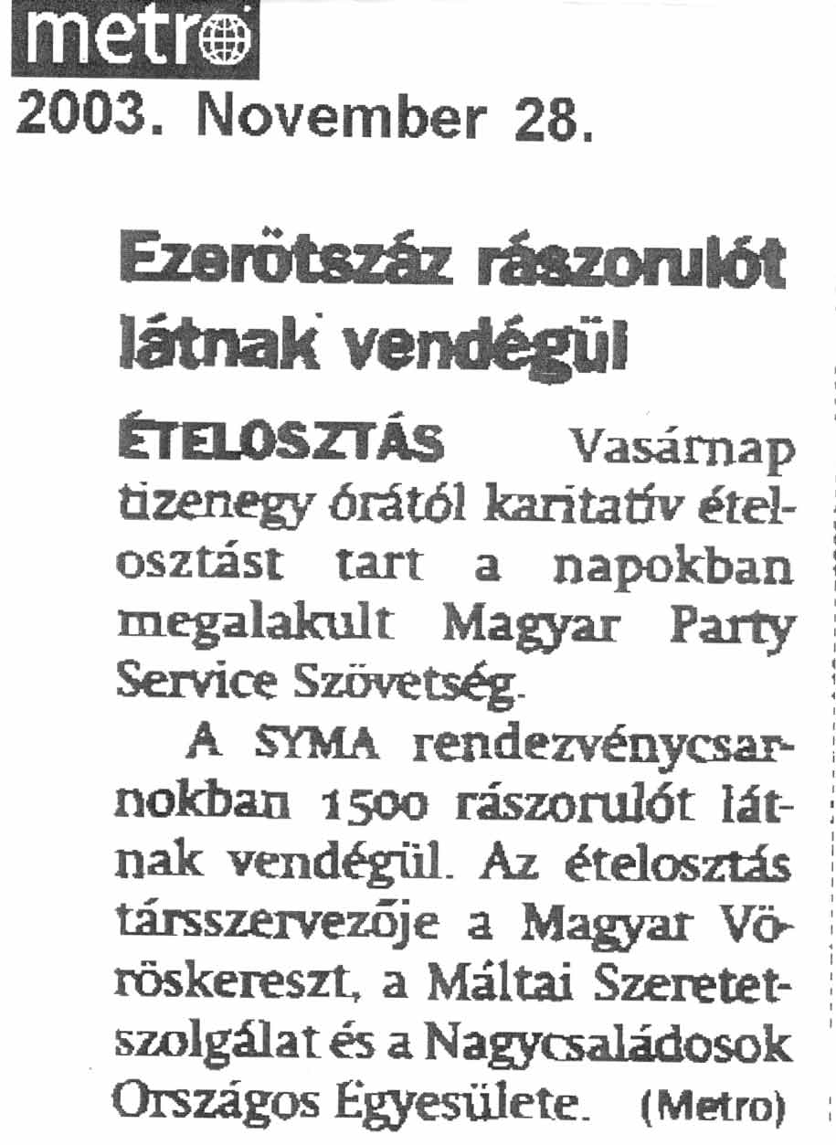 2003. november 30-án a SYMA Csarnokban 2000 főt vendégelt meg a